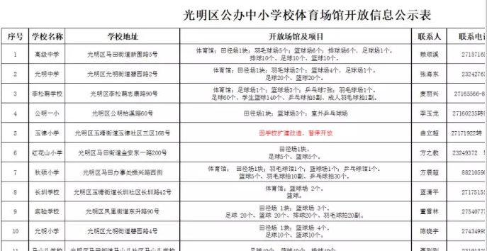 光明這14所學校體育設施免費對外開 ...