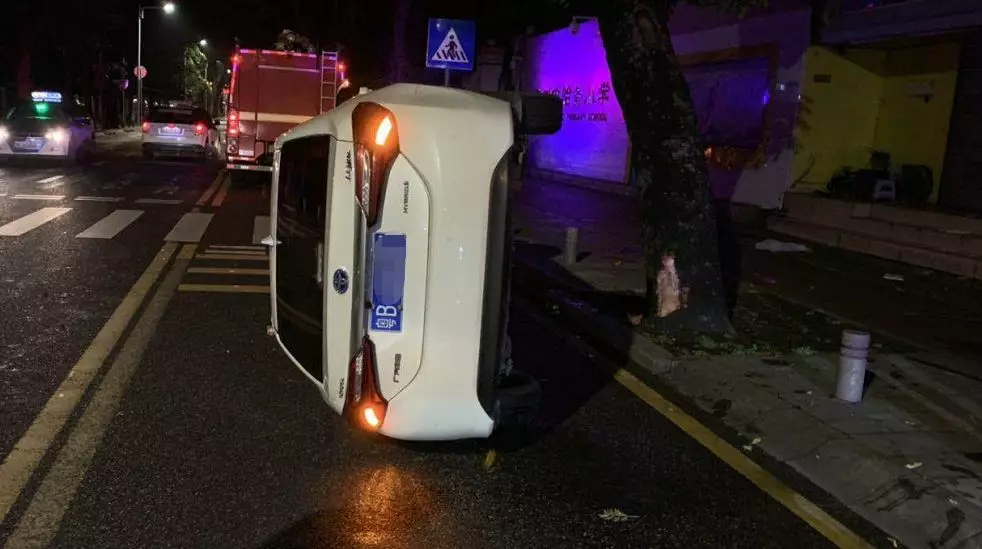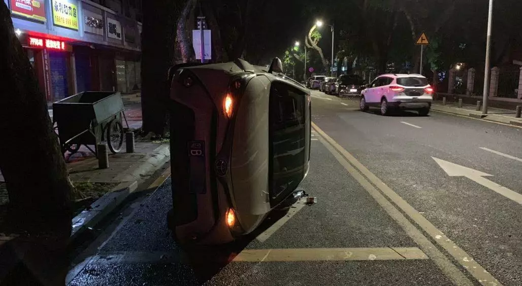 深圳交警接報后,立即趕往事故現(xiàn)場進(jìn)行處理。民警到達(dá)事故現(xiàn)場時,只見涉事車輛側(cè)翻在路肩旁,白色小車左側(cè)駕駛位已經(jīng)凹陷變形,部分車身零部件脫落掉在地上,車輛因故障無法啟動,駕駛員李某未受傷。