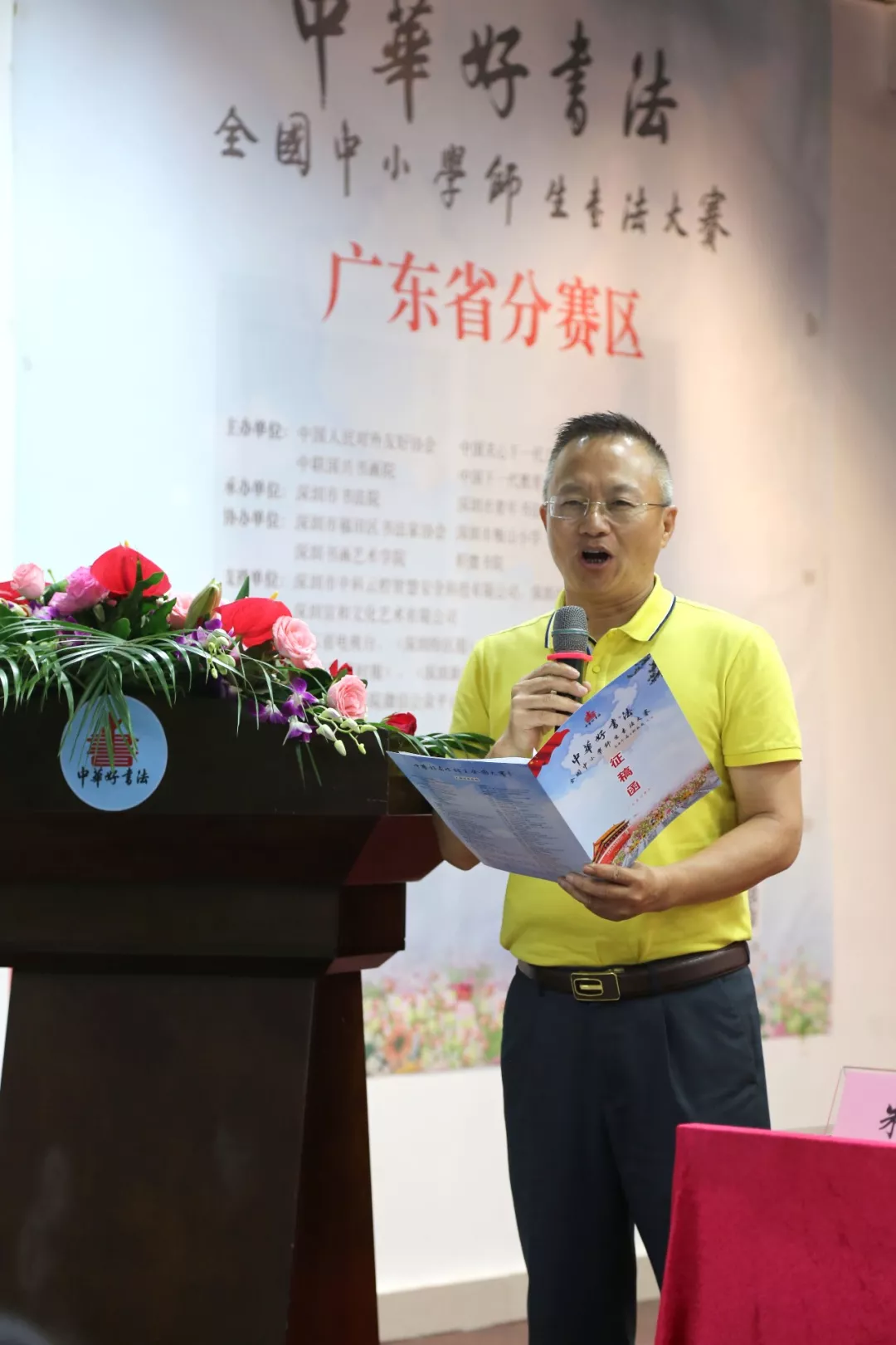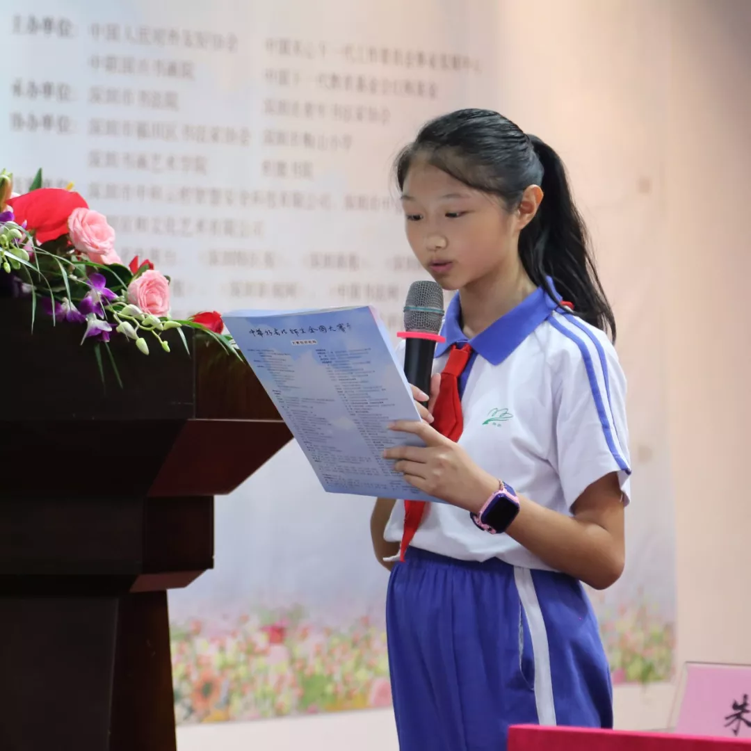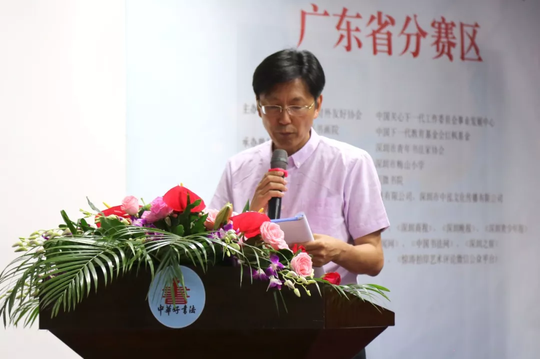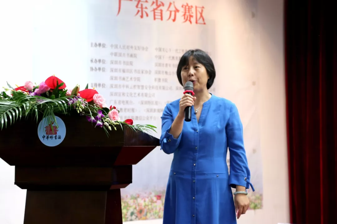 深圳市老干局副局長、深圳市關(guān)心一下工作委員會辦公室領(lǐng)導(dǎo)王小蓉女士宣布“中華好書法”全國中小學(xué)師生書法大賽廣東省分賽區(qū)比賽正式啟動