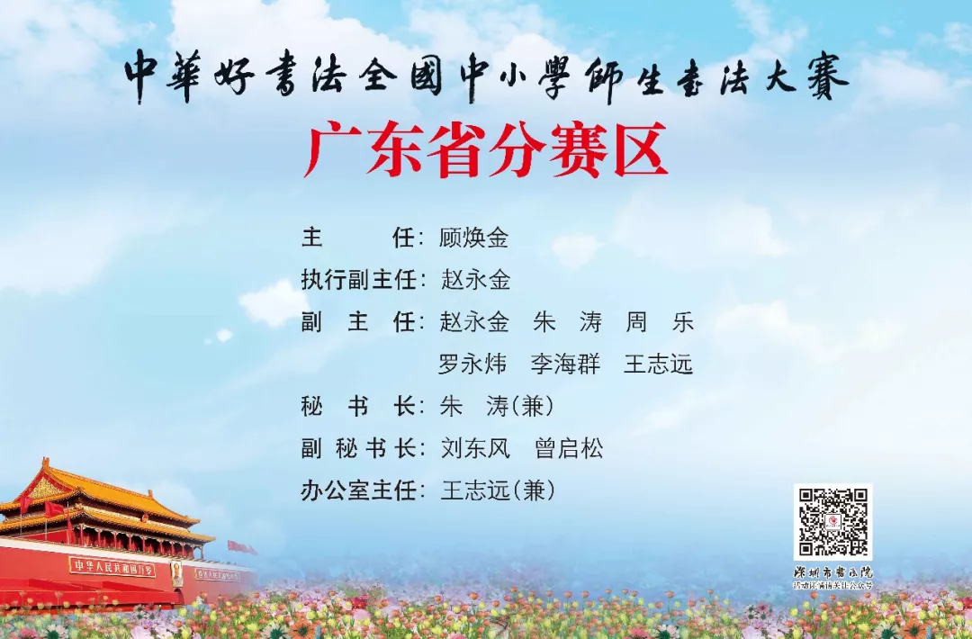 啟動儀式宣布成立“中華好書法”全國中小學(xué)師生書法大賽廣東省分賽區(qū)組委會、評委會和秘書處等工作機構(gòu)。顧煥金任廣東省分賽區(qū)組委會主任,趙永金任廣東省分賽區(qū)組委會執(zhí)行副主任,朱濤、羅永煒、周樂、李海群、王志遠(yuǎn)任廣東省分賽區(qū)組委會副主任,朱濤兼廣東省分賽區(qū)組委會秘書長,劉東風(fēng)、曾啟松任廣東省分賽區(qū)組委會副秘書長,王志遠(yuǎn)兼任廣東省分賽區(qū)組委會辦公室主任。