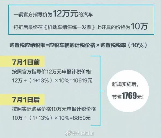 7月1日起,消費者購買車輛應扣稅款將取決于實際支付金額