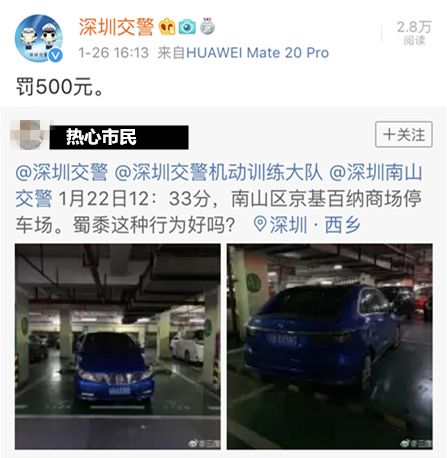 若是車輛在停車場內(nèi)違停,占用消防通道、阻礙車輛通行的可直接向深圳交警舉報,交警來管!