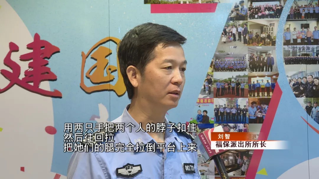 關(guān)鍵時(shí)刻,劉智一個(gè)箭步上前,雙手迅速摟住兩名女子的脖子,身體往后倒,順勢把二人從屋檐上拉了下來。