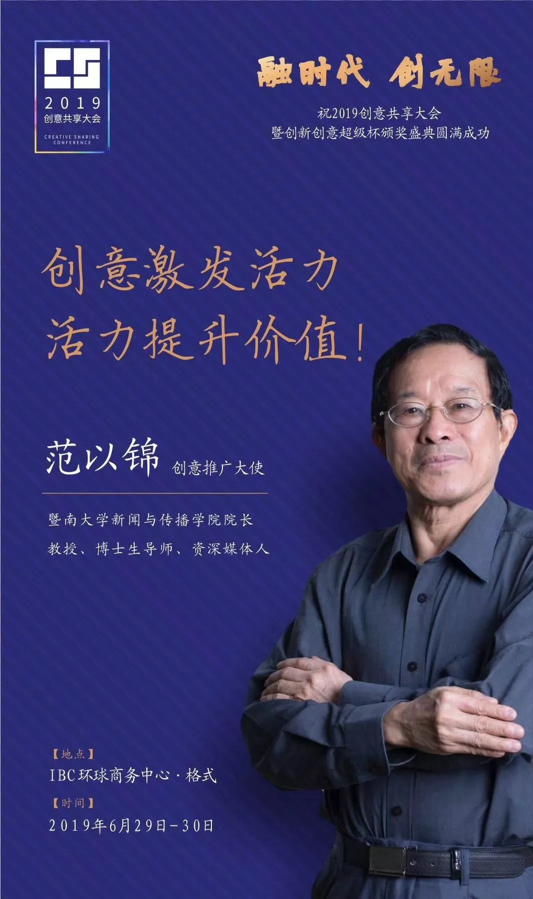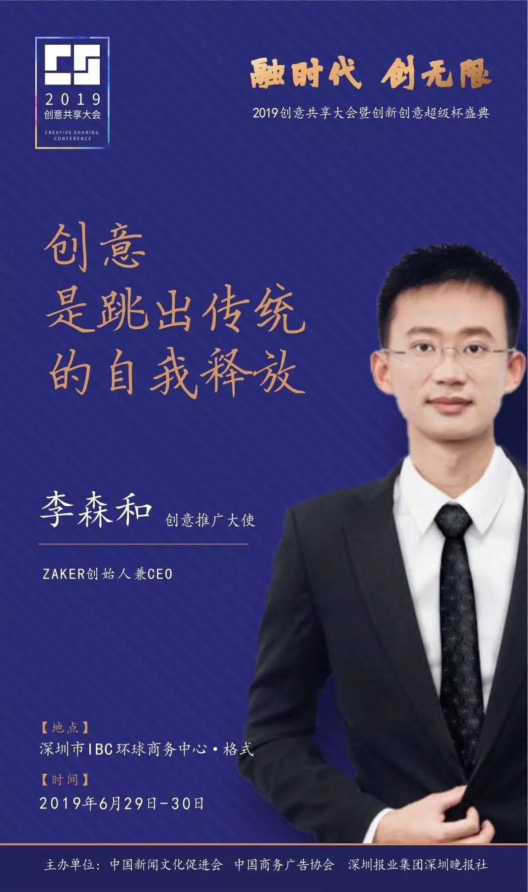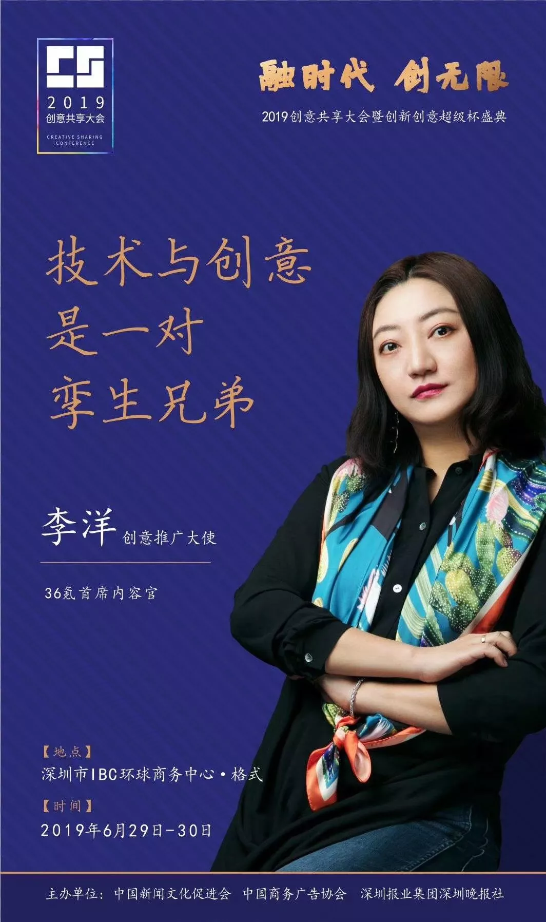 為了展現(xiàn)創(chuàng)意中國的精神風(fēng)貌和創(chuàng)意傳媒的文化力量,構(gòu)建創(chuàng)新創(chuàng)意共同體,擘畫美好圖景和未來趨勢,2019年6月29日至30日,由中國新聞文化促進(jìn)會(huì)、中國商務(wù)廣告協(xié)會(huì)、深圳報(bào)業(yè)集團(tuán)深圳晚報(bào)社等聯(lián)合主辦的“融時(shí)代創(chuàng)無限——2019創(chuàng)意共享大會(huì)暨創(chuàng)新創(chuàng)意超級杯盛典”將在深圳市IBC環(huán)球商務(wù)中心隆重舉辦。