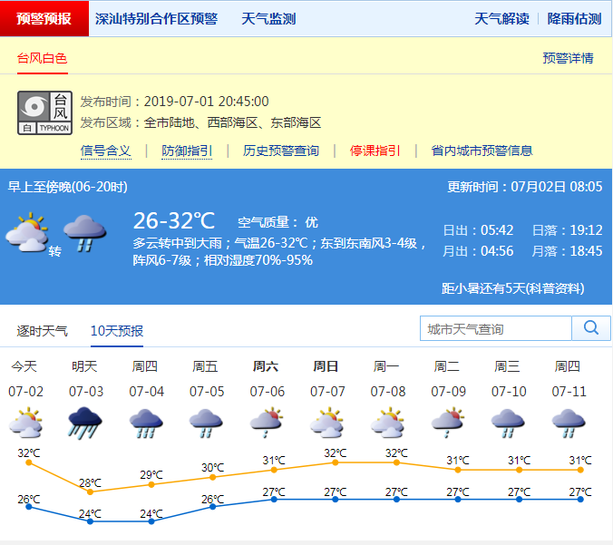 深圳新聞網(wǎng)2019年07月02日訊 深圳市氣象臺已于昨日20時45分發(fā)布臺風(fēng)白色預(yù)警信號,預(yù)計其將可能在48小時內(nèi)影響我市,全市進(jìn)入臺風(fēng)注意狀態(tài)。氣象臺預(yù)計,今日白天深圳風(fēng)力逐漸加大,最大陣風(fēng)7級左右,午后降雨漸趨頻密,局部大雨,夜間降雨加大,有大雨到暴雨,局部大暴雨,請做好防范準(zhǔn)備!