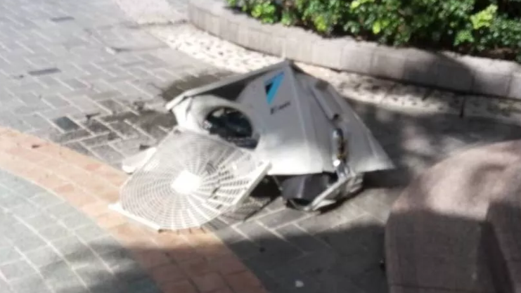 7月1日,深圳再現(xiàn)高空墜物!福田區(qū)萬科金色家園小區(qū)一臺空調(diào)主機從11樓墜下