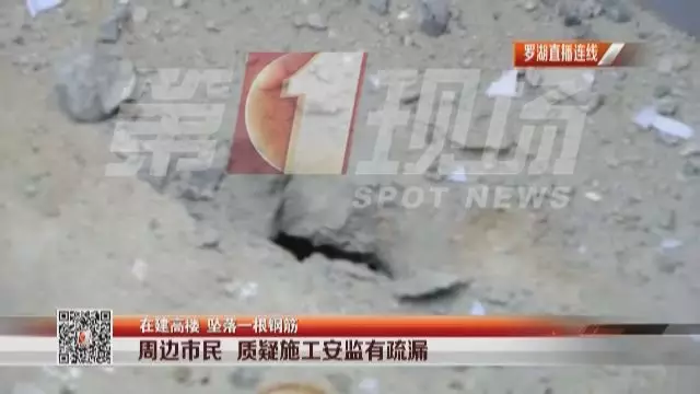 ▲墜落鋼筋砸穿水泥地面