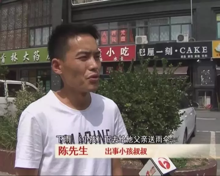 安徽一名小學生在雨天接爸爸時,
