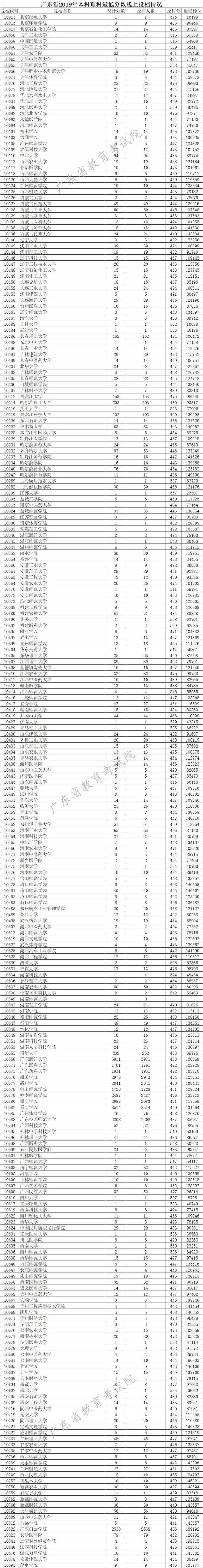 廣東省2019年本科理科最低分?jǐn)?shù)線上投檔情況