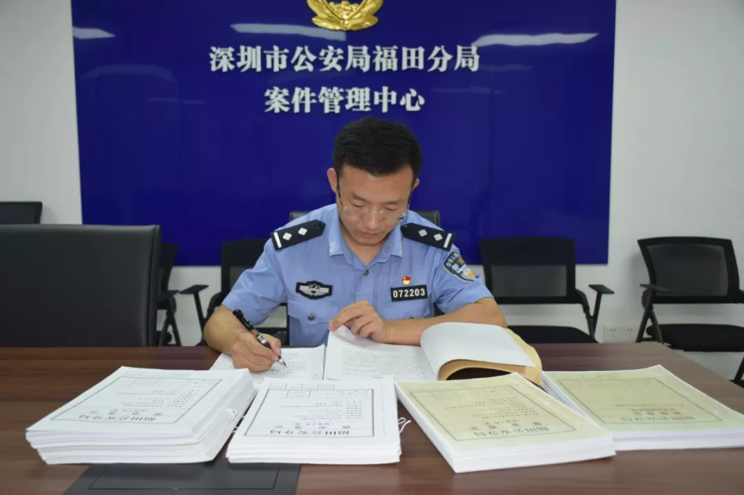 24小時(shí)值班后再繼續(xù)加班是靳鵬的工作常態(tài),他馬不停蹄地趕往出入境大隊(duì)參加會(huì)議。會(huì)議結(jié)束,靳鵬并沒有離開,而是將卷宗按順序鋪好,開始了他的工作——查看證據(jù)收集情況和提供法律支撐。150頁A4大小的卷宗裝訂成冊(cè),足足4大本,靳鵬邊看邊拿著筆“刷刷刷”地在紙上做記錄。