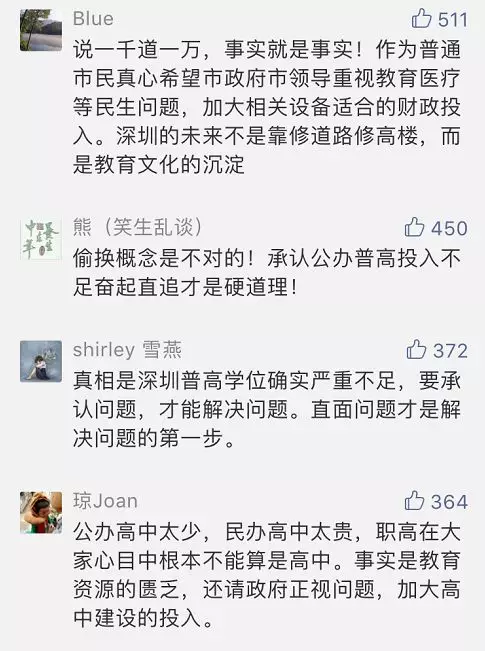一邊是45.38%的公辦普高錄取率,一邊是93%的家長希望孩子選擇公辦普高,一邊是龐大的中考學(xué)生人群,這其中就是最大的矛盾:偏低的辦公普高錄取率滿足不了深圳人對公辦普高教育的需求。