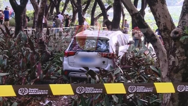 據(jù)現(xiàn)場(chǎng)目擊者稱當(dāng)時(shí)車輛直接碾過人行綠道并撞飛了兩個(gè)小孩,最終車頭撞向荷花塘邊的一棵大樹才停住,如果不是這棵大樹阻擋,這輛車很有可能會(huì)沖向荷花塘里。