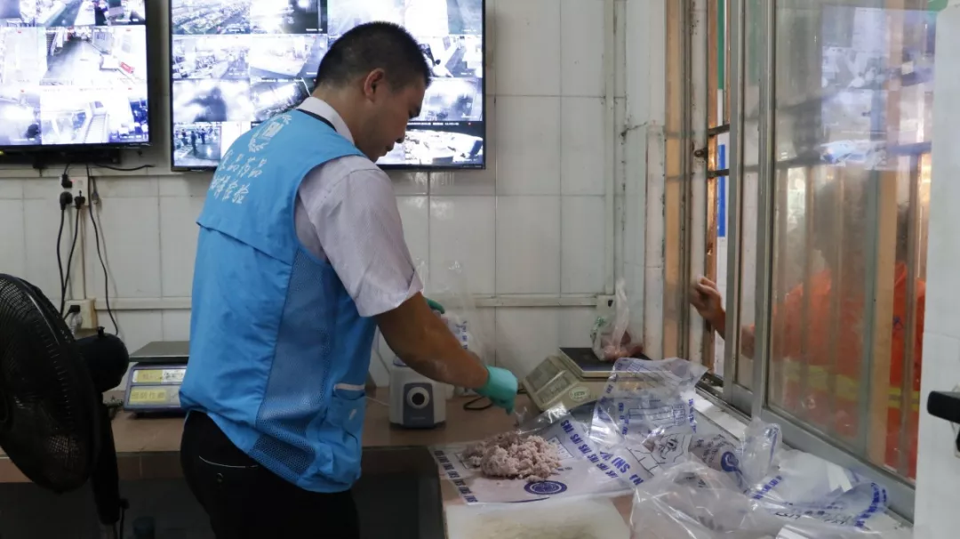 執(zhí)法人員根據(jù)市場開辦方提供的市場檔位明細(xì)表,首先隨機(jī)選取了市場內(nèi)的肉檔、水產(chǎn)品檔、菜檔,逐一進(jìn)行檢查,對檔位的營業(yè)執(zhí)照、臺賬建立情況檢查無誤后,執(zhí)法人員又隨機(jī)指定了檢查品種,由快檢人員現(xiàn)場開展快檢工作。