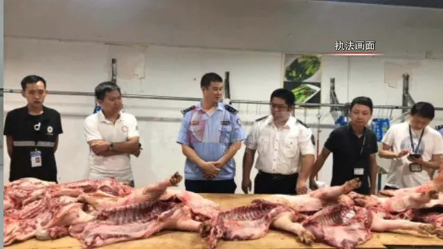 然后就看到了滿桌未經檢驗檢疫的臭豬肉(共1600公斤)