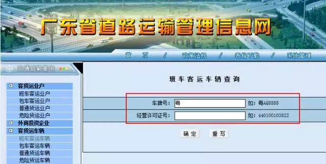 登錄廣東省道路運(yùn)輸管理信息網(wǎng),點(diǎn)擊左側(cè)菜單欄中的「客貨運(yùn)車輛」,再點(diǎn)擊「客班車客運(yùn)車輛」,就能進(jìn)入到查詢頁(yè)面。