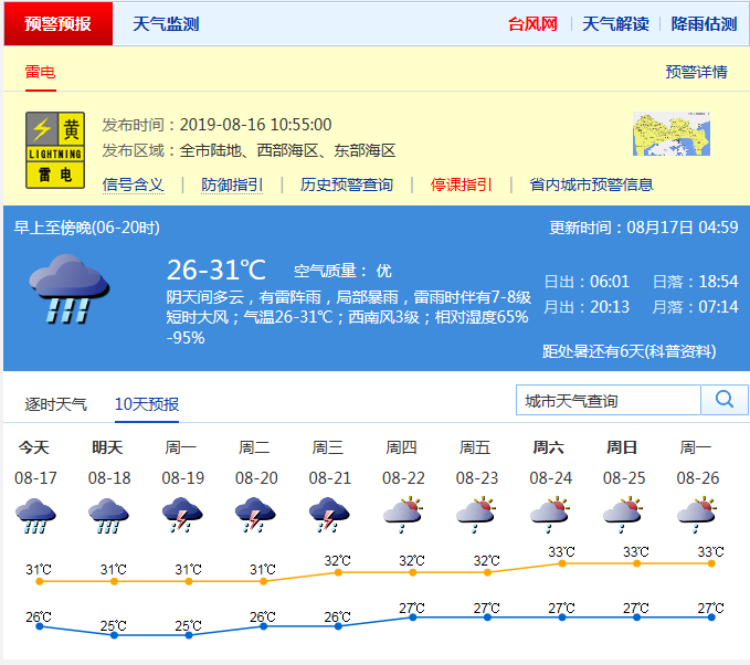 接下來,天氣將發(fā)生轉(zhuǎn)變,預(yù)計17日至19日有雷陣雨,局部可達暴雨量級,伴有雷暴和7~8級短時大風(fēng),高溫天氣將得到緩解,提醒市民做好防雷防雨防風(fēng)措施。
