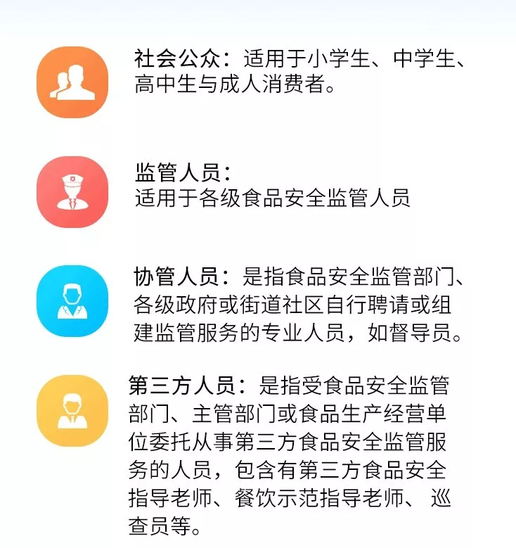 鼓勵(lì)食品生產(chǎn)經(jīng)營企業(yè)主要負(fù)責(zé)人、食品安全關(guān)鍵崗位人員參加全省食品安全管理員統(tǒng)一考試,并獲取《證明》?!蹲C明》在全省范圍內(nèi)有效。