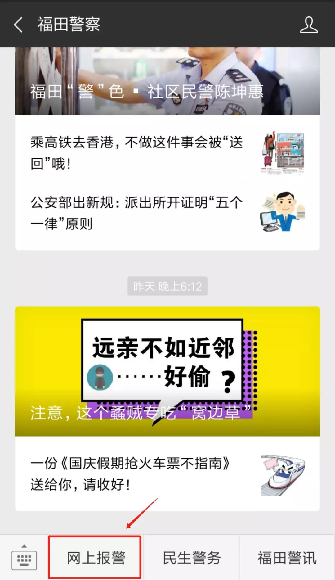 1、關注“福田警察”微信公眾號