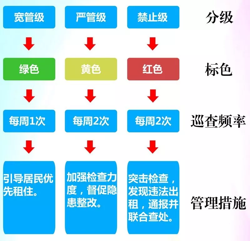 各街道在本轄區(qū)內(nèi)全面落實出租屋分類分級管理,區(qū)工作領導小組在各街道完成后開展全面驗收。