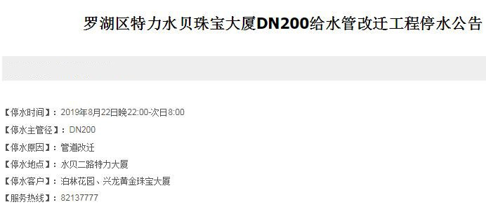停水時間:2019年8月22日晚23:00至23日6:00