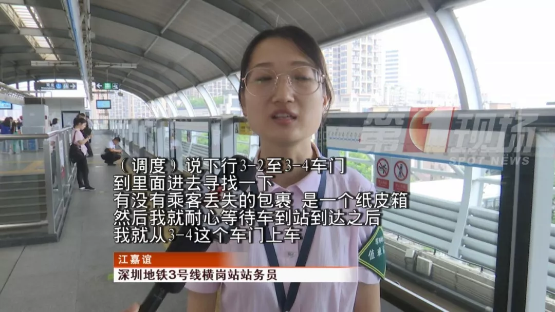當(dāng)時(shí),一輛列車即將到達(dá)龍崗的橫崗站,站務(wù)員從3-4號(hào)門上車尋找。最終,站務(wù)員在列車座位下面找到了乘客遺失的紙箱,并通知乘客前往橫崗站。