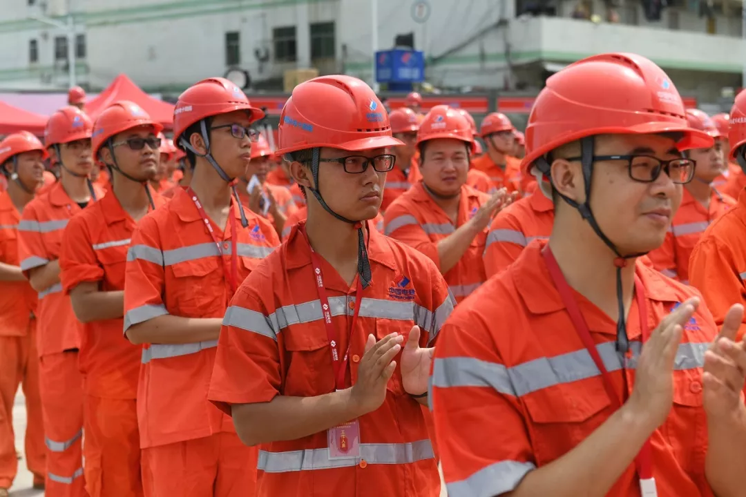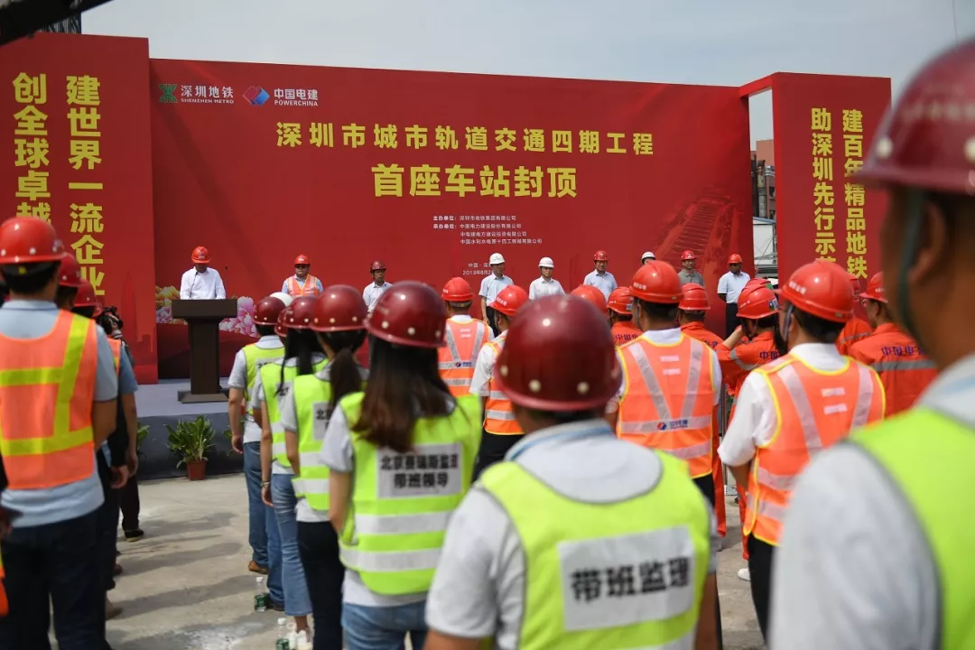 ▲深圳市城市軌道交通四期工程首座車(chē)站-洲石路站封頂儀式現(xiàn)場(chǎng)