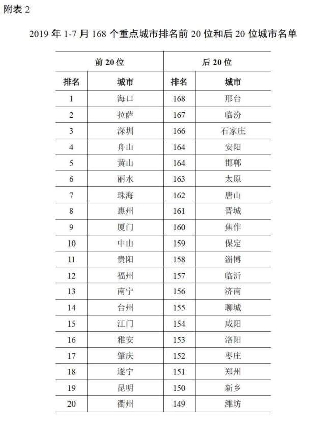 原標(biāo)題:1-7月全國(guó)空氣質(zhì)量深圳排第三,前20名廣東占6席