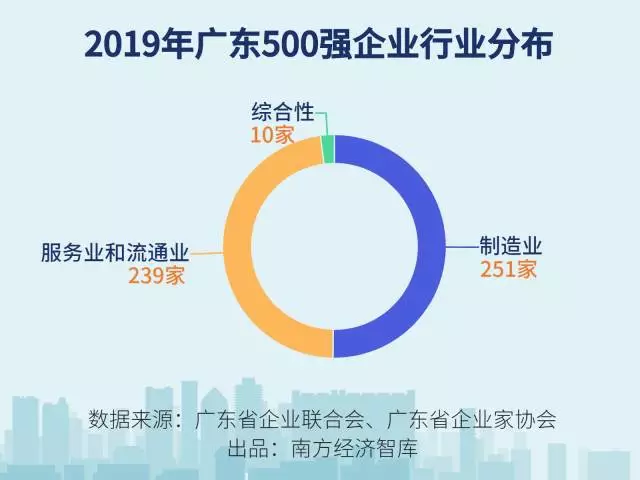 從行業(yè)分布來看,制造業(yè)企業(yè)251家,占比50.2%;服務(wù)業(yè)和流通業(yè)企業(yè)239家,占比47.8%;綜合性企業(yè)10家。