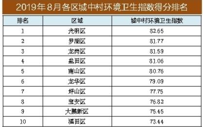 全市城中村首次單獨(dú)“應(yīng)考”,成績(jī)?nèi)绾??根?jù)公布的測(cè)評(píng)結(jié)果,深圳市城中村環(huán)境衛(wèi)生指數(shù)為79.05分,光明區(qū)、羅湖區(qū)、龍崗區(qū)城中村環(huán)境衛(wèi)生指數(shù)位列三甲,城中村人口密度較大的福田區(qū)則在首次公布的城中村環(huán)境衛(wèi)生指數(shù)排名中墊底。排名前3的街道分別是桂園街道(羅湖)、馬田街道(光明)和園山街道(龍崗),而排名后3的街道分別是寶龍街道(龍崗)、燕羅街道(寶安)和大鵬辦事處(大鵬)。