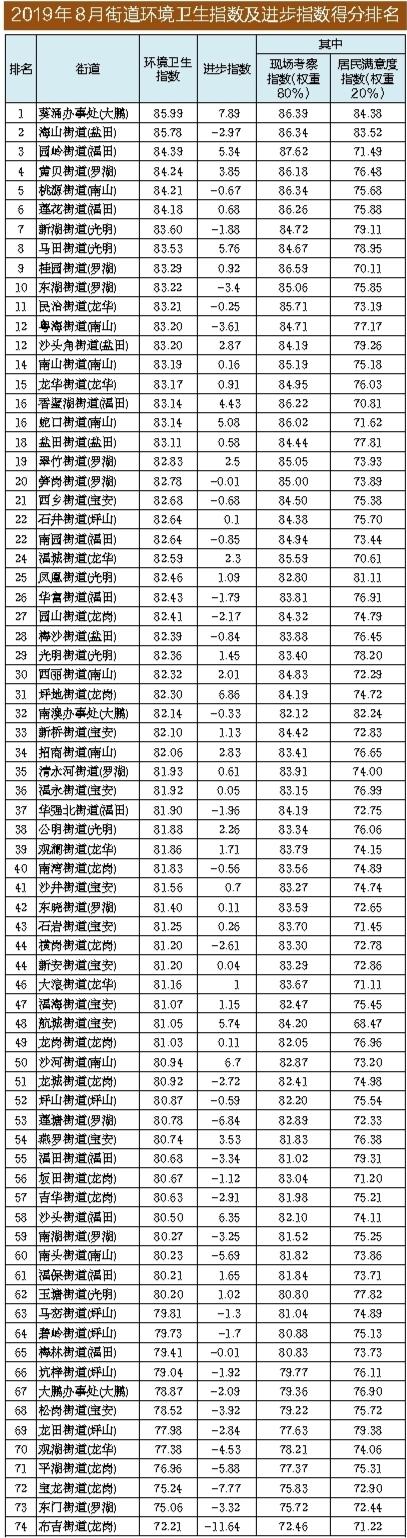 原標(biāo)題:8月份深圳市環(huán)境衛(wèi)生指數(shù)測(cè)評(píng)成績(jī)發(fā)布