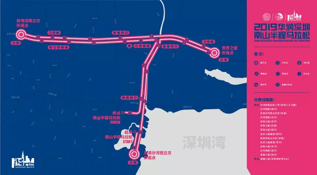 值得一提的是,今年南馬的路線較去年略有調(diào)整,賽事線路整體呈T字形,賽道起點在沙河西路后海二橋(深圳人才公園東門),賽道終點在海德三道(深圳灣體育中心),賽道主體由沙河西路和深南大道組成一縱一橫,途徑深圳灣總部經(jīng)濟片區(qū)、高新技術(shù)園、大沙河生態(tài)長廊、世界之窗、南頭古城等多個地標(biāo)性建筑,不僅彌補了往年沒有經(jīng)過深圳灣海域的遺憾,讓選手在賽跑之余一覽灣區(qū)海景,更向選手與觀眾充分展示南山自然人文科技之美。