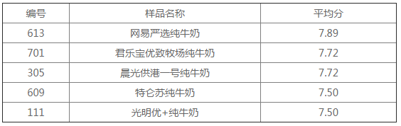 此前,深圳市消費(fèi)者委員會(huì)還對(duì)16款牛奶進(jìn)行了主觀測(cè)評(píng),邀請(qǐng)20位各行業(yè)人士對(duì)牛奶的口感進(jìn)行了盲測(cè),根據(jù)他們的喜好,給出了濃稠度、奶香度、爽滑度三方面的評(píng)價(jià),并評(píng)出了總體喜好度前五的牛奶↓