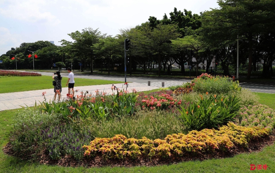 除了花帶,市城市管理和綜合執(zhí)法局還在深南大道行人過馬路的地方新打造了10個花園路口,每個小花園5-10平方米,結(jié)合原有路口的景觀設計,融入海綿生態(tài)理念,增加蜜源、觀花和色葉植物,組合成花境,讓在路口等紅綠燈的市民能欣賞到深圳的自然之美。