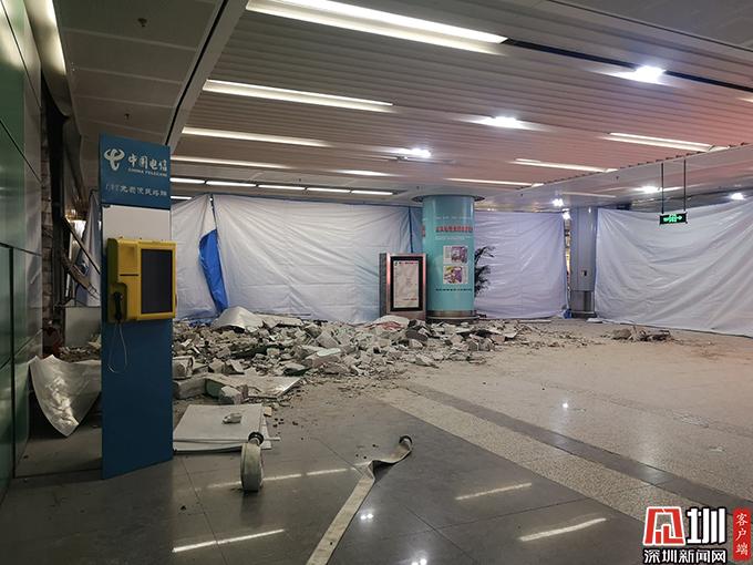 記者在事故現(xiàn)場看到,受損車輛已經(jīng)被拖走,大廳內(nèi)一地瓦礫