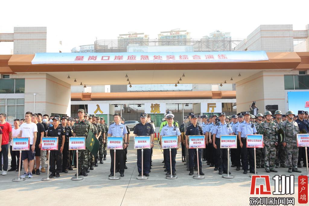 福田區(qū)委副書記黃曉鵬,福田區(qū)委常委、人民武裝部部長李惟海,福田區(qū)人民政府副區(qū)長、市公安局福田分局局長、黨委書記江峰,深圳海關(guān)黨組成員、皇崗海關(guān)關(guān)長王味冰,深圳邊檢總站黨委委員、副總站長、皇崗邊檢站站長陳宏軍,深圳市反恐辦、深圳市口岸辦、以及各參演單位領(lǐng)導(dǎo)現(xiàn)場檢閱觀摩了本場演練。