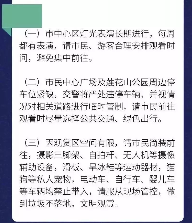 需要注意的是,最后一場燈光秀的播放時(shí)間較之以往有所調(diào)整,播放時(shí)間調(diào)整為21:00,