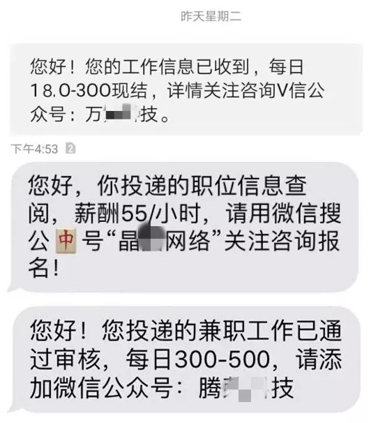 內(nèi)容更是大同小異,都是要求應聘者添加某個QQ號或者關(guān)注某個微信公眾號。