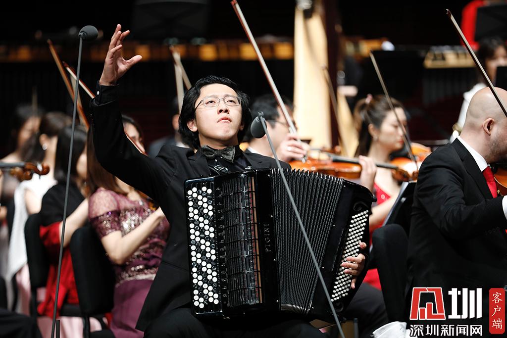 中國(guó)青年巴揚(yáng)手風(fēng)琴演奏家毛俊澔在彩排現(xiàn)場(chǎng)演奏。