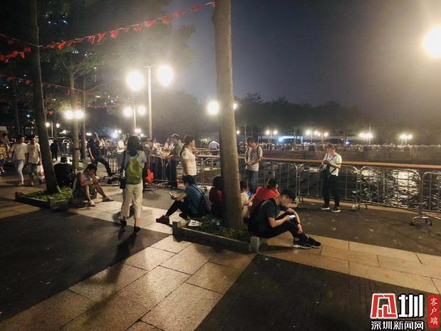 10月1日晚上9:00,看完焰火表演的市民仍不愿離去,想要留下來(lái)看今日最后一場(chǎng)燈光秀。