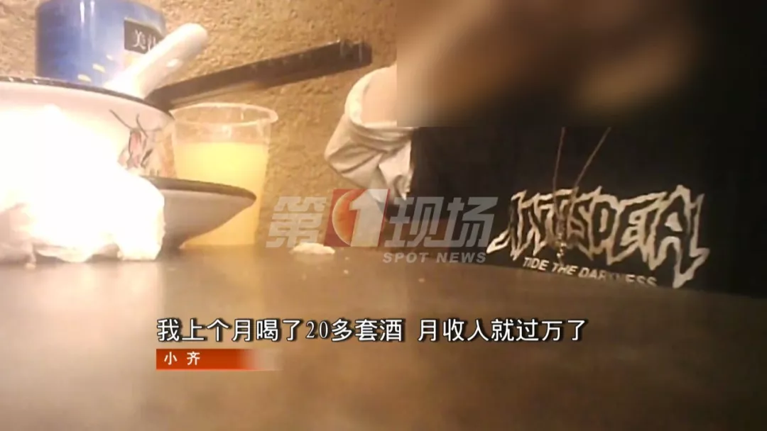 接單后,可以叫其他女孩過來陪酒,業(yè)內(nèi)俗稱“女站”,“女站”喝一套酒,可以賺38塊8,小齊就是其中一位,這樣她可以做到月入上萬。