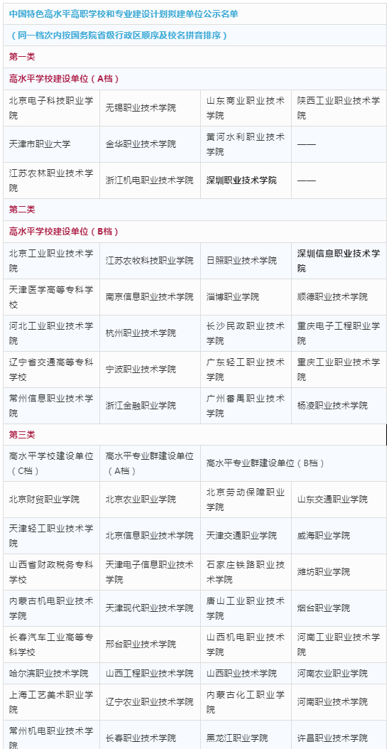 今天上午,教育部和財政部正式發(fā)布《關于中國特色高水平高職學校和專業(yè)建設計劃擬建單位的公示》,經(jīng)高職學校自愿申報,省級教育部門、財政部門審核推薦,中國特色高水平高職學校和專業(yè)建設計劃項目建設咨詢專家委員會評審,教育部、財政部審定,擬立項中國特色高水平高職學校和專業(yè)建設計劃建設單位197個(簡稱“雙高計劃”),現(xiàn)予公示。公示期7天(2019年10月25日—10月31日)。