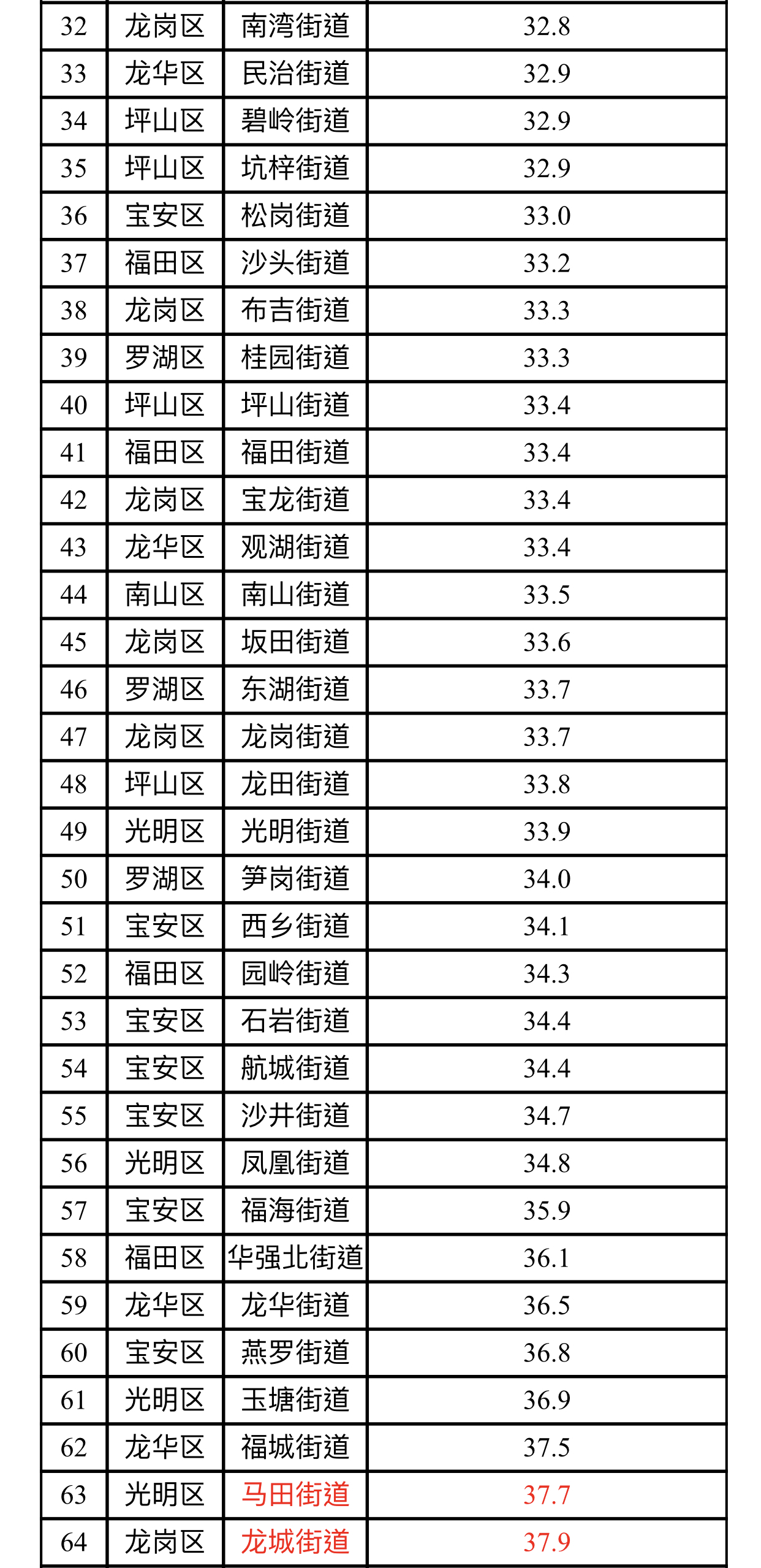 見圳客戶端·深圳新聞網(wǎng)2019年11月5日訊(見圳客戶端、深圳新聞網(wǎng)記者陳婕)11月5日,記者從深圳市生態(tài)環(huán)境局了解到,2019年10月,全市74個(gè)街道PM2.5濃度在25.7-40.4微克/立方米之間,均值為33.3微克/立方米。排名前十的是:南澳、海山、桃源、橫崗、鹽田、南湖、沙頭角、蓮塘、蛇口和黃貝等街道,排名倒數(shù)前十的是:新湖、觀瀾、平湖、新安、坪地、公明、福永、大浪、龍城和馬田等街道。