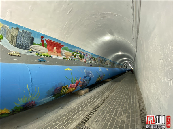 了解到這一情況后,南灣街道立即組織建設(shè)辦和樟樹(shù)布社區(qū)工作人員到現(xiàn)場(chǎng)實(shí)地察看、走訪(fǎng),在征求居民們的意見(jiàn)后,決定對(duì)這條隧道進(jìn)行全面整治、涂鴉,并于今年9月進(jìn)場(chǎng)開(kāi)始重建、翻新該條隧道。該街道先后組織了施工隊(duì)員20余名,經(jīng)過(guò)40余天全封閉到半封閉的專(zhuān)業(yè)施工工作,先后完成路面鋪設(shè)、照明系統(tǒng)升級(jí)、安裝監(jiān)控設(shè)備、以及全面粉刷等,并進(jìn)行了全面涂鴉,內(nèi)容既有新中國(guó)的人文發(fā)展,也有栩栩如生的海洋動(dòng)物、化腐朽為神奇的山水畫(huà)等等,實(shí)現(xiàn)了隧道環(huán)境和“五彩繽紛美麗樟樹(shù)布”理念的和諧統(tǒng)一。該隧道已于今年10月底正式對(duì)周邊居民群眾開(kāi)放。