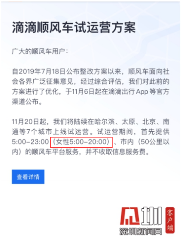 面對爭議,滴滴調(diào)整了:對所有順風車用戶提供服務(wù)的時間均改為5:00-20:00