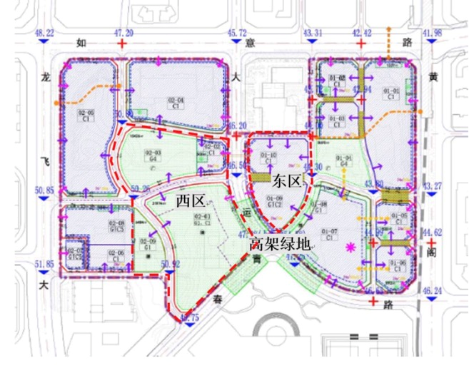 設計將考慮公配及綠地地塊東區(qū)(含01-09、01-10地塊)與商業(yè)為鄰,以“文化”為前提,通過功能模塊相互并聯(lián),體現(xiàn)公共文化性。公配及綠地地塊西區(qū)(含02-01、02-02、02-03、02-09地塊)與公寓、大運場館為鄰,以“休閑”為前提,結合公共空間的營造,打造低密度綠色景觀開放空間,體現(xiàn)休閑生活性。高架綠地為連接東西區(qū)、商業(yè)、超塔及大運體育場館的重要慢行樞紐,需注重流線的合理性及公共開放空間與建筑的有機結合。