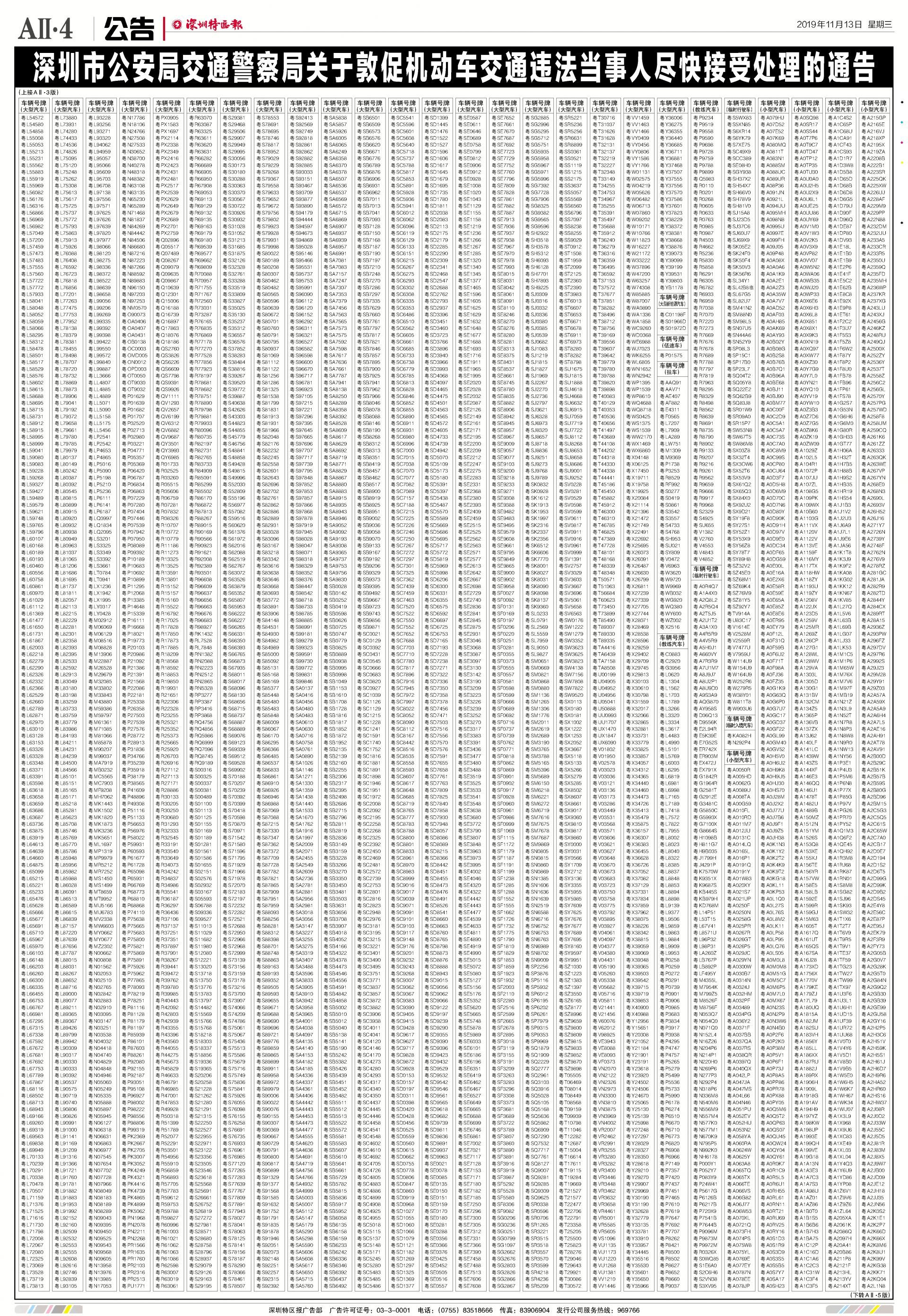 今年7月至10月初,全市機動車被“電子警察”抓拍交通違法行為1342781宗,深圳交警通過多種方式進(jìn)行交通違法行為告知,但截止至目前仍有部分機動車的非現(xiàn)場交通違法未及時處理。