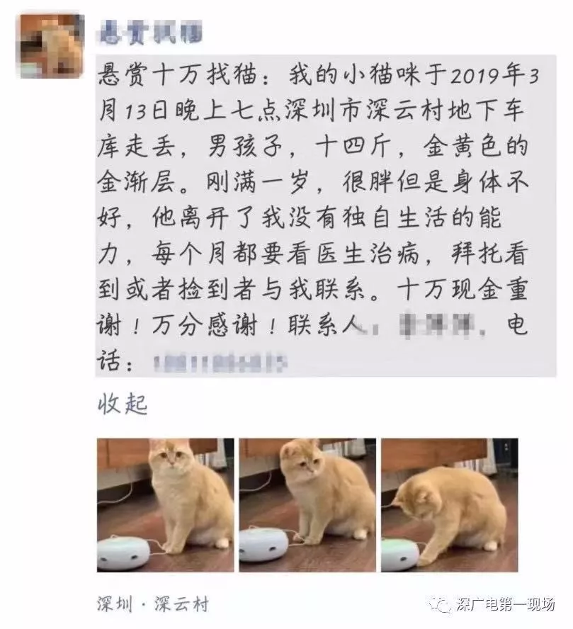 “十萬(wàn)重金尋貓”的啟事。