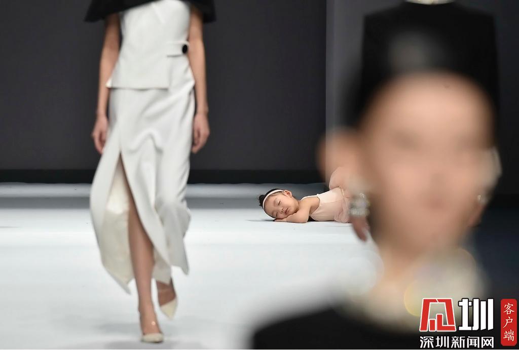 2019年3月15日,深圳時(shí)裝周,一位在T臺上睡著的小女孩。