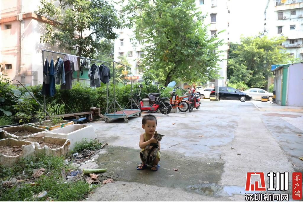 2019年8月9日,福田南華村,一位小男孩和他的貓。