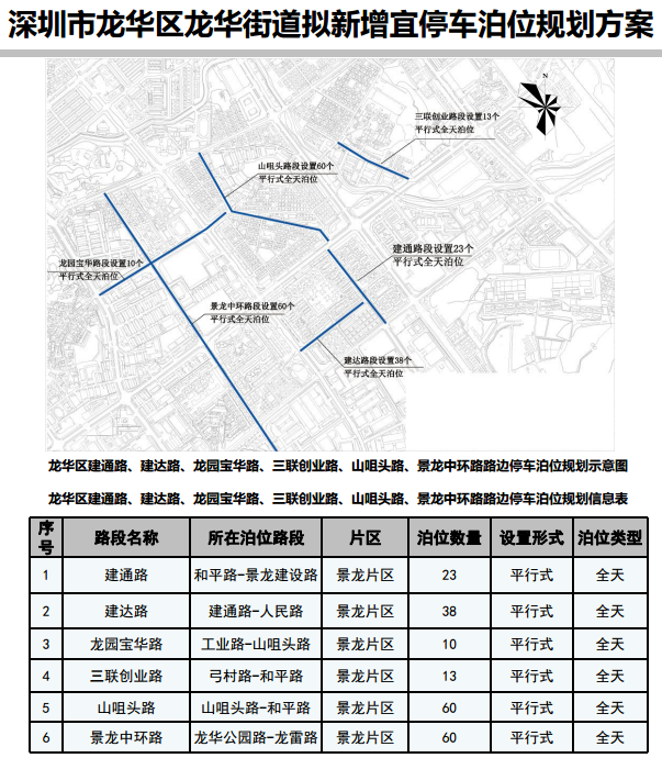 其中,在寶安區(qū)3條道路新增316個(gè)宜停車(chē)泊位、龍崗區(qū)23條道路新增890個(gè)宜停車(chē)泊位、龍華區(qū)14條道路新增702個(gè)宜停車(chē)泊位、光明區(qū)9條道路新增305個(gè)宜停車(chē)泊位、大鵬新區(qū)5條道路新增157個(gè)宜停車(chē)泊位。具體規(guī)劃方案如下: